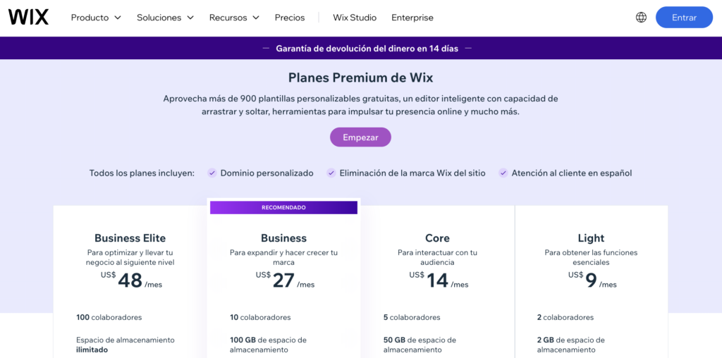 Sin embargo es importante que revises y valides si los planes que te brinda WIX, se adaptan a lo que necesitas y sobre si tu presupuesto en el mediano y largo plazo son suficientes.